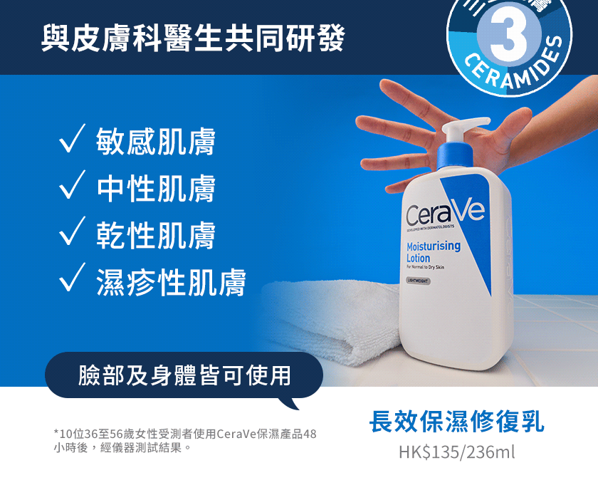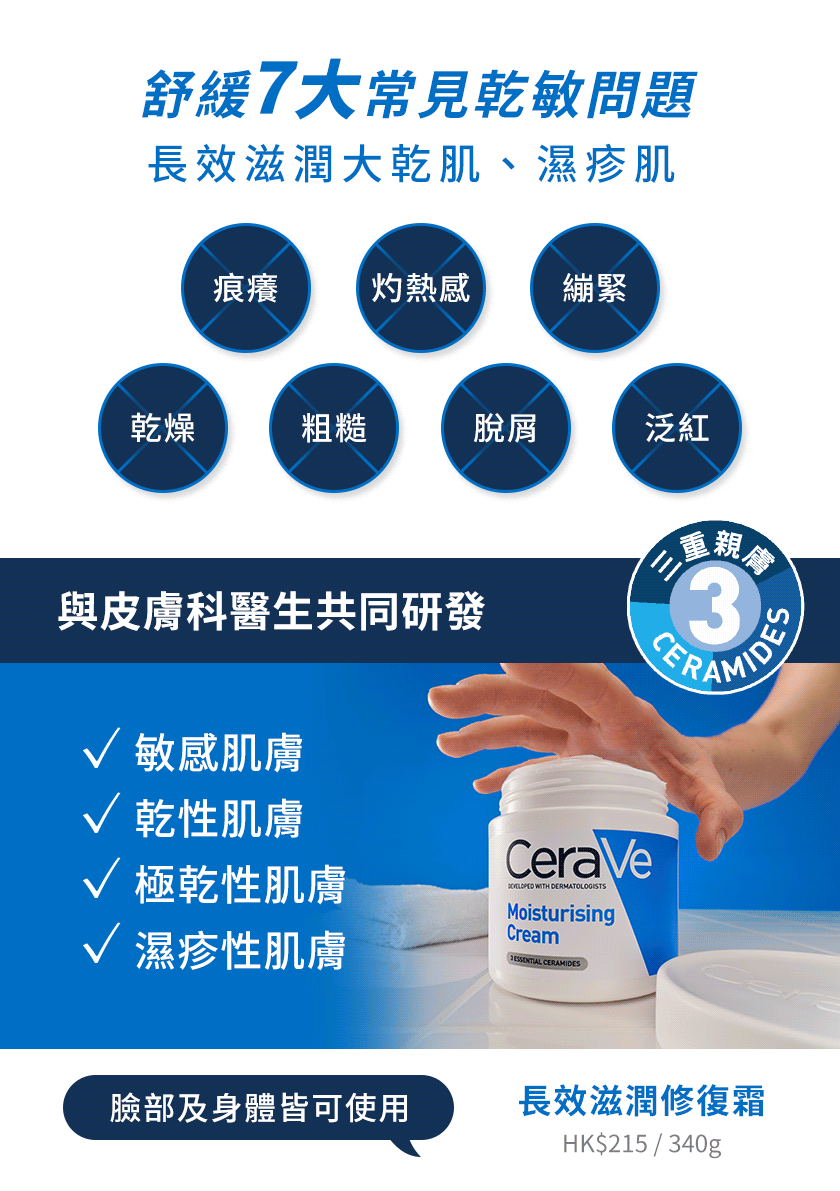 【限時優惠】秋冬轉季必備 - CeraVe長效保濕系列,皮膚科醫生推介,乾敏肌之選!