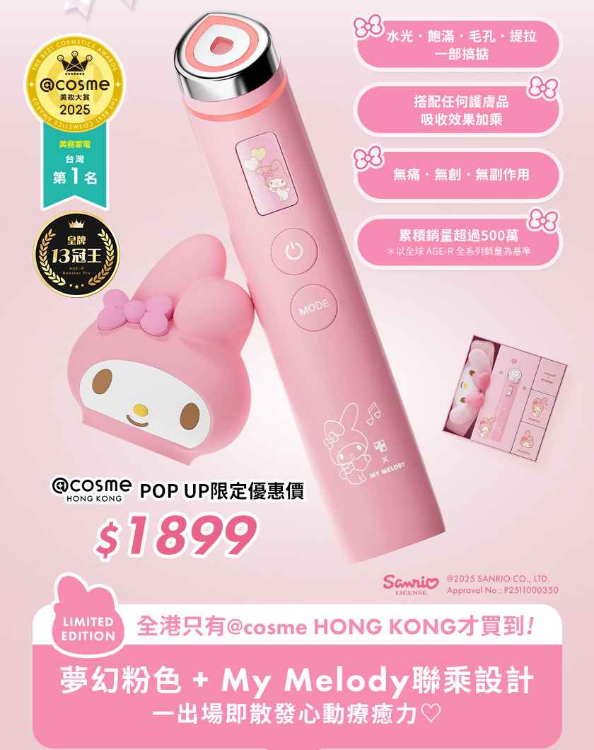 心動注意!韓國 NO.1 醫美品牌 medicube 夢幻聯乘 My Melody!張員瑛同款美容儀強勢登陸@cosme旗艦店!