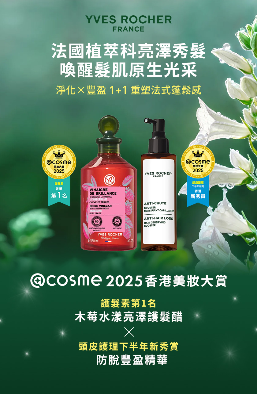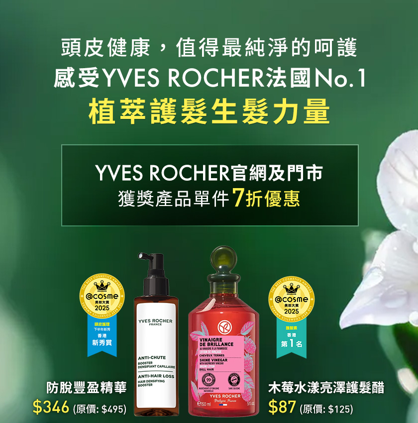 【7折優惠】Yves Rocher 法國植萃科研,淨化及豐盈1+1,重塑法式蓬鬆感秀髮!