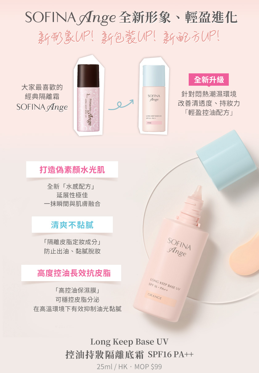 【9折優惠】日本大熱 全新升級 SOFINA Ange 控油持妝隔離底霜 - 水感 X 控油 X 調色