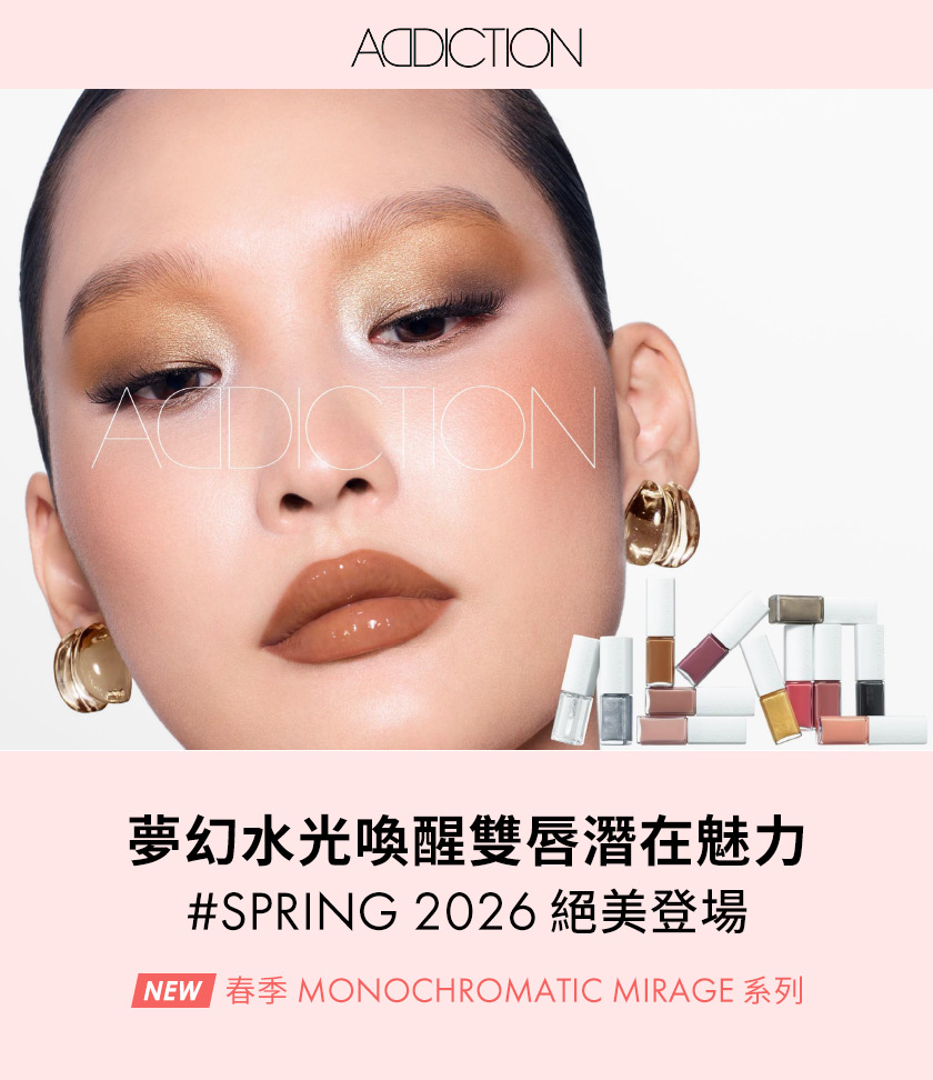 ADDICTION 2026 春季最新彩妝系列,夢幻水光唇妝,打造日系精緻妝容!