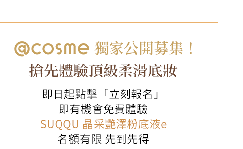 【免費試用活動】立即體驗 SUQQU 全新升級版晶采艷澤粉底液 e,打造日系高光感底妝!