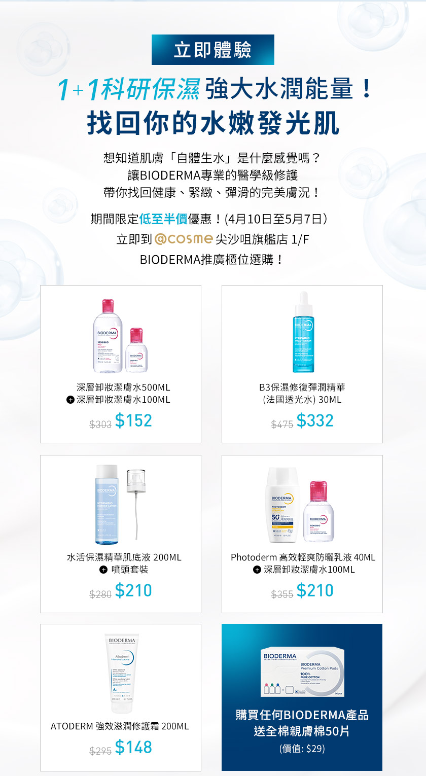 讓肌膚自體生水、水光爆發的秘訣?BIODERMA 1+1科研保濕 皮膚科醫生首選推薦!