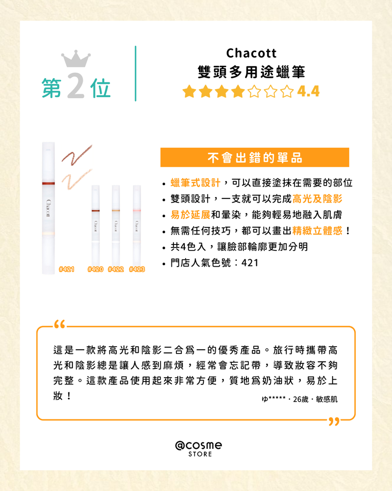 **評論取自@cosme香港、台灣及日本的數據