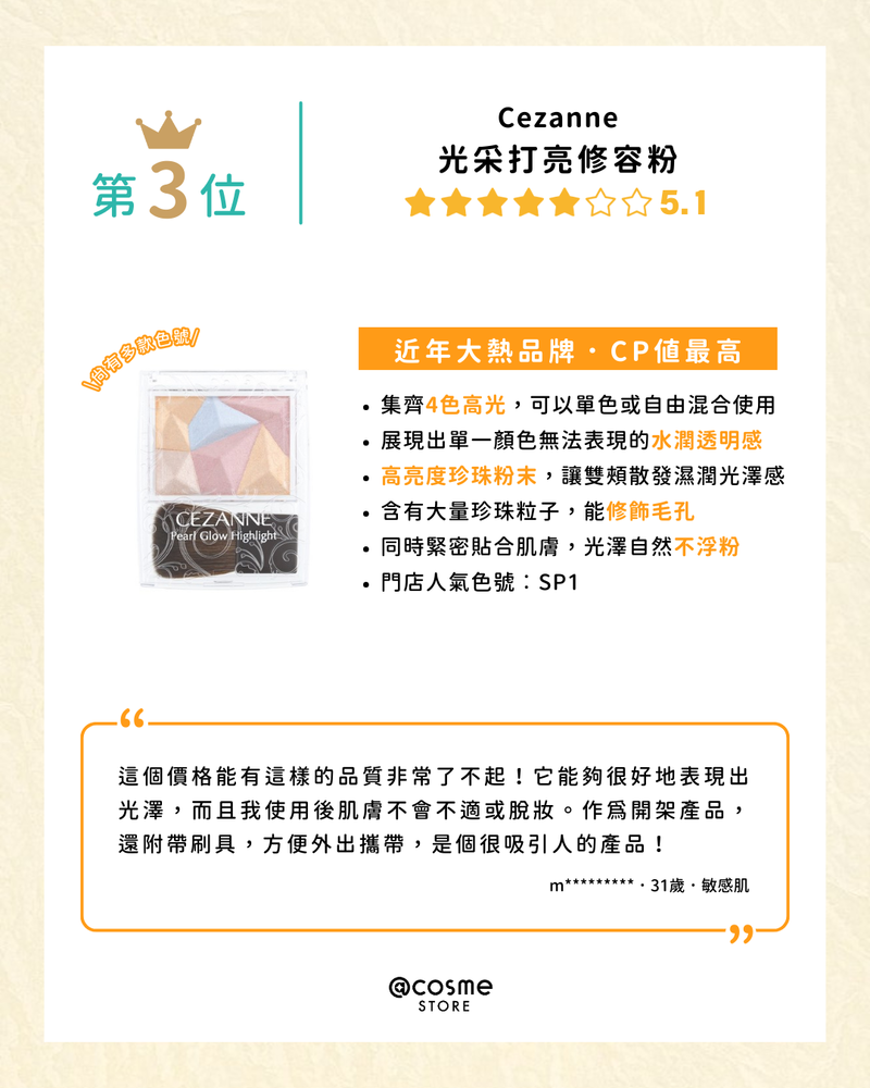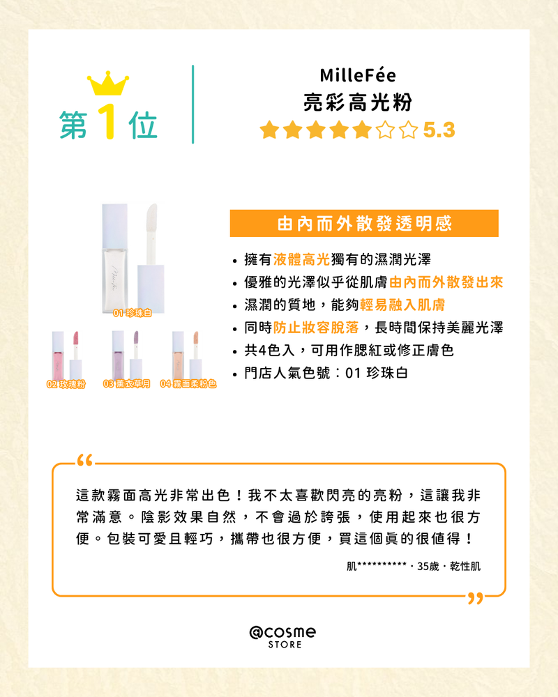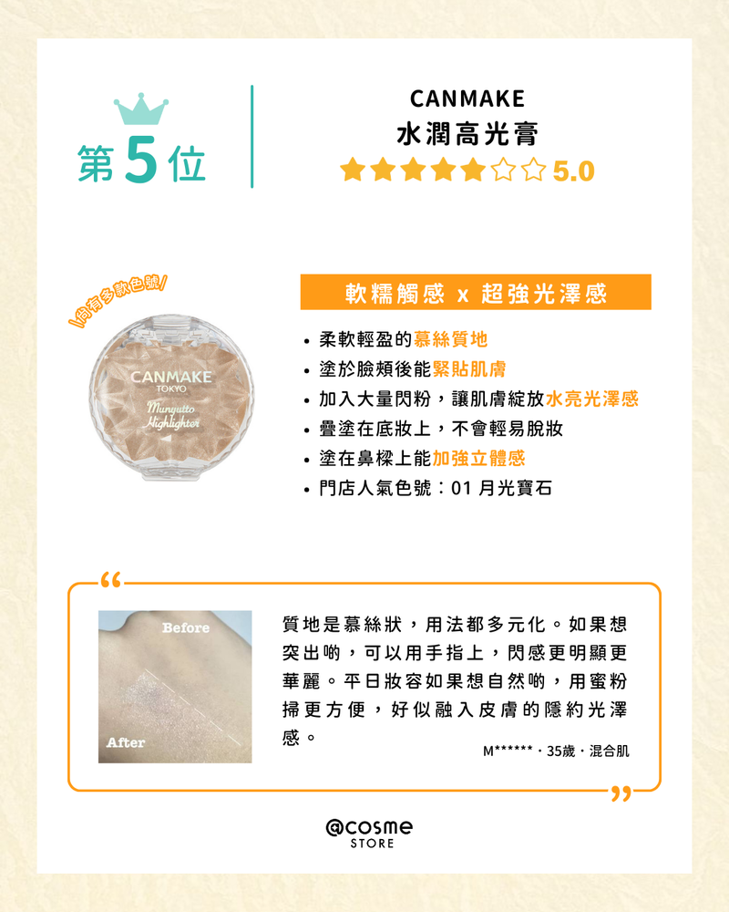 【高光Highlighter TOP 5 | @cosme STORE 最新排行榜公佈🥁】/@cosme STORE
