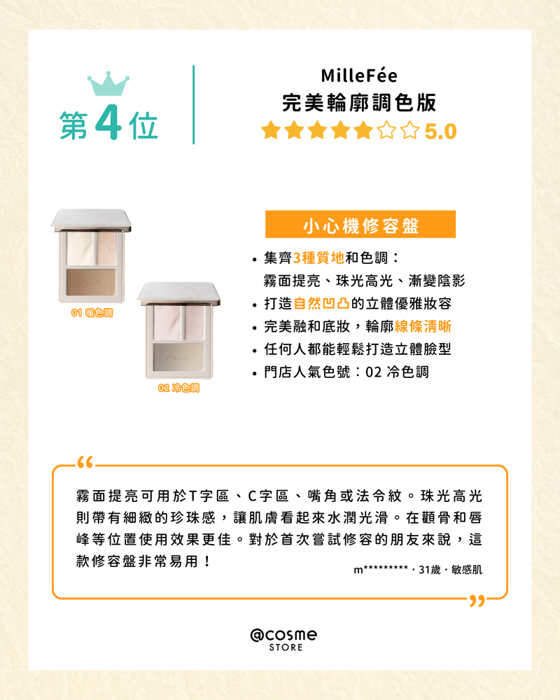 TOP 4 ✦ 𝐌𝐢𝐥𝐥𝐞𝐅𝐞́𝐞 完美輪廓調色版