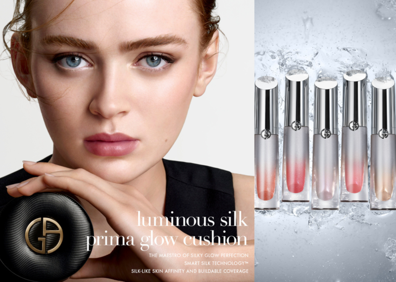 人氣女演員兼ARMANI beauty全球香水與彩妝代言人Sadie Sink,為ARMANI「高光氣墊」拍攝廣告,散發一見難忘又充滿電影質感的迷人風采。氣墊粉底層層叠加的遮瑕力和養肌配方為Sadie打造出無瑕美肌,讓底妝綻放立體貼膚的高級光感。