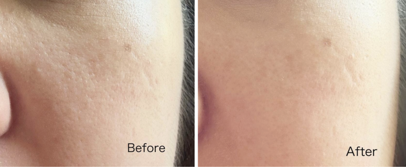 zinzinzini 分享前後對比圖,並稱讚:「 呢個粉餅好薄,搽上臉之後好似貼住毛孔,皮膚即刻平滑有光澤,好似真皮咁靚!而且佢冇乜粉感,我試過用濕粉撲加強遮瑕,妝感依然唔厚重,一日keep住清爽唔甩妝。配方入面透明質酸同海藻精華,令皮膚保持水潤,完全唔會覺得油膩或焗住。」