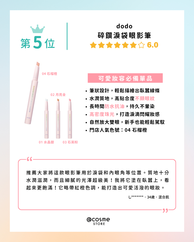 TOP 5 ✦ 𝐝𝐨𝐝𝐨 碎鑽淚袋眼影筆 <4色入>