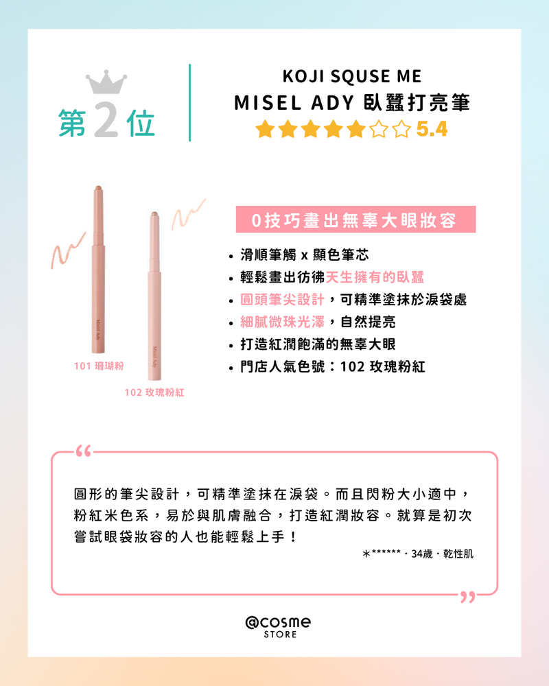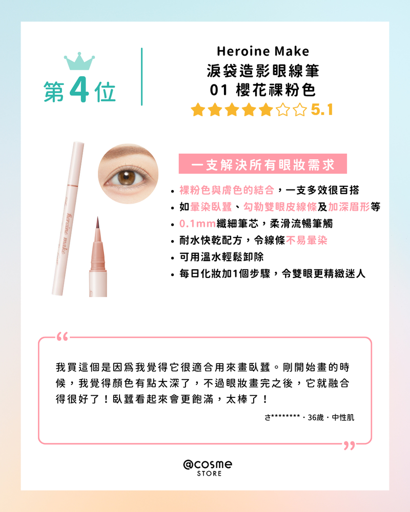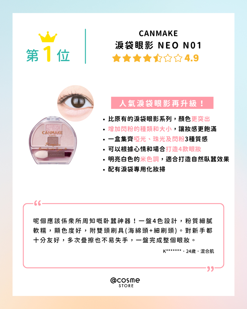【👀臥蠶彩妝TOP 5 | @cosme STORE 最新排行榜公佈】/@cosme STORE