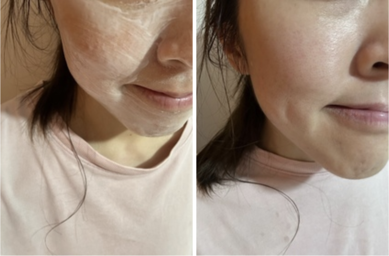 敏感肌的wawabibi則親身認證,說產品真的做到鎮定皮膚同補水的作用!她分享,因為近日天氣濕焗,使她生了不少粉刺、痘痘,臉頰過敏泛紅。敷完15分鐘後,過敏泛紅位置瞬間紓緩,皮膚柔嫩到自己也忍不住摸面!