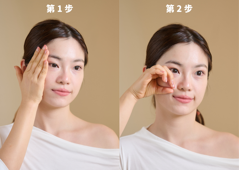 掌心緊貼臉頰,由臉頰內側向外側向上拉提 3 至 5 次。