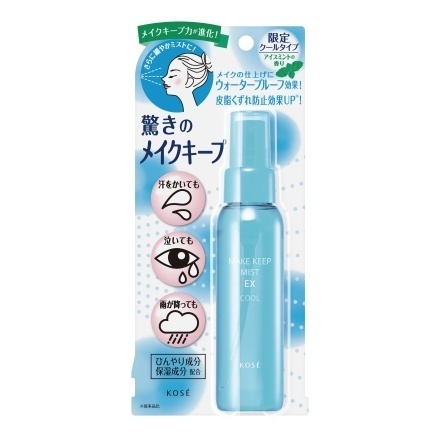 在皮脂、日曬、汗水等煩惱增加的季節,清涼成分和冰涼薄荷香氣,讓人即時感覺舒爽清涼。進化版噴嘴,噴霧更細密舒適,噴灑於肌膚上形成更均匀細緻薄膜不易噴花妝容。配合保護彩妝成分,定妝之餘,同時具有伸縮性,妝容隨表情移動亦不走樣,亮麗持久不易脫妝。彩妝不易沾口罩防止因口罩而脫妝的煩惱。