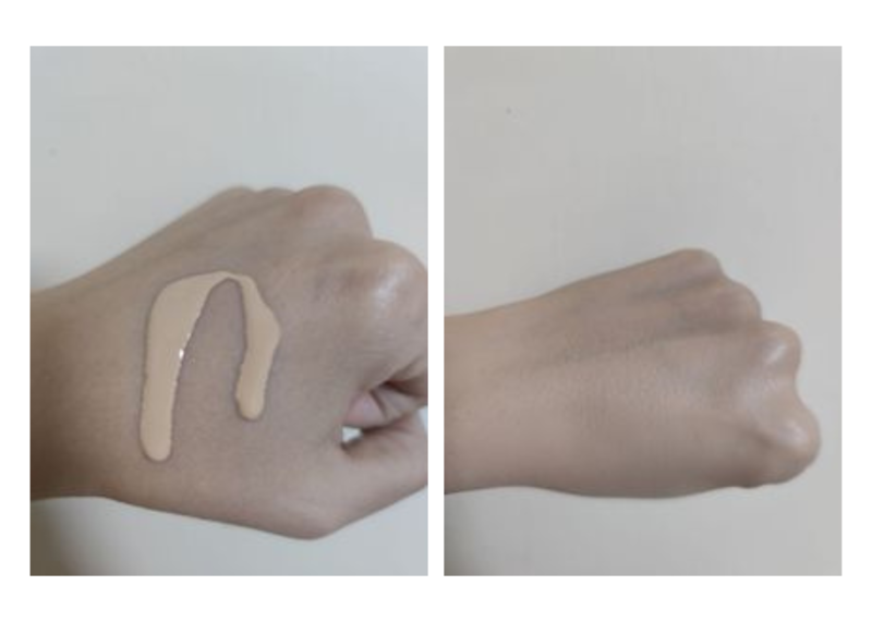 wcm: 自己冬天乾性夏天中至油性,但這支粉底液意外地好用!質地流動性高,延展性佳,手指亦能輕鬆推勻。妝感是自然微光的水潤肌,遮瑕度中等(泛紅可蓋7成,深痘印需疊加),但勝在完全不厚重,多次疊擦也不卡粉!搭配技巧上,單用 對油肌持妝力稍弱,但「碎粉(我用Innisfree無油薄荷)+定妝噴霧(推薦NYX霧面款)」後,持妝度超級好! 整體不斑駁,且出油後轉為奶油肌,暗沉不明顯(約半個色階)。