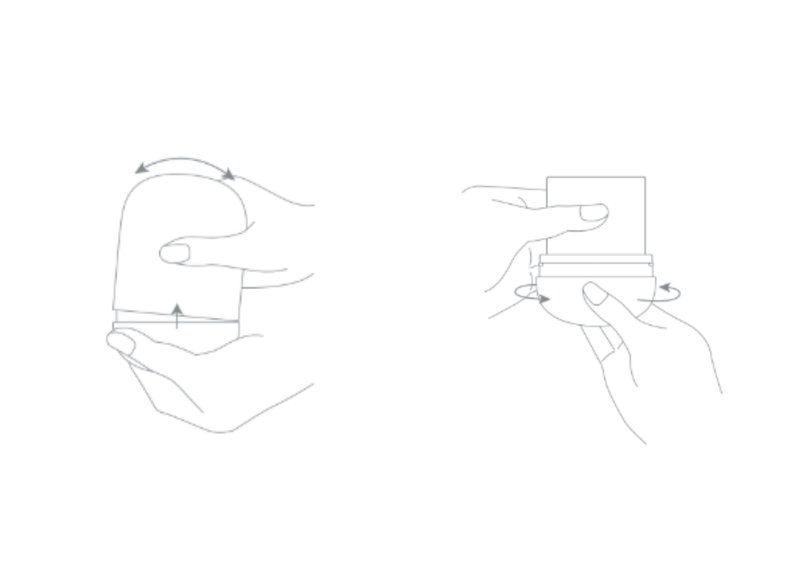 握住容器中間,旋轉容器底部即可推出膏體,可直接塗抹,或以手指沾取後用於肌膚或頭髮等位置。