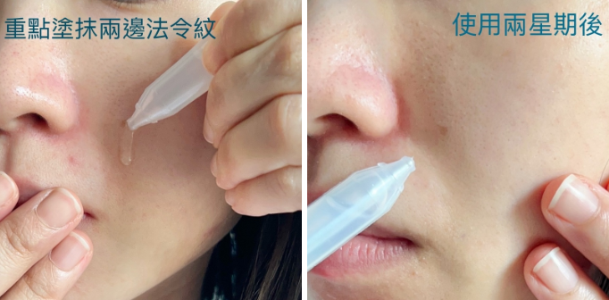 Haidy:用了大概兩週,原本明顯的法令紋和眼睛細紋,真的有變淡的感覺!