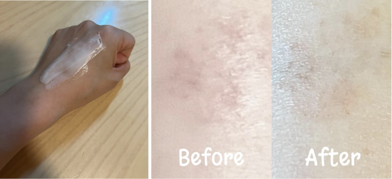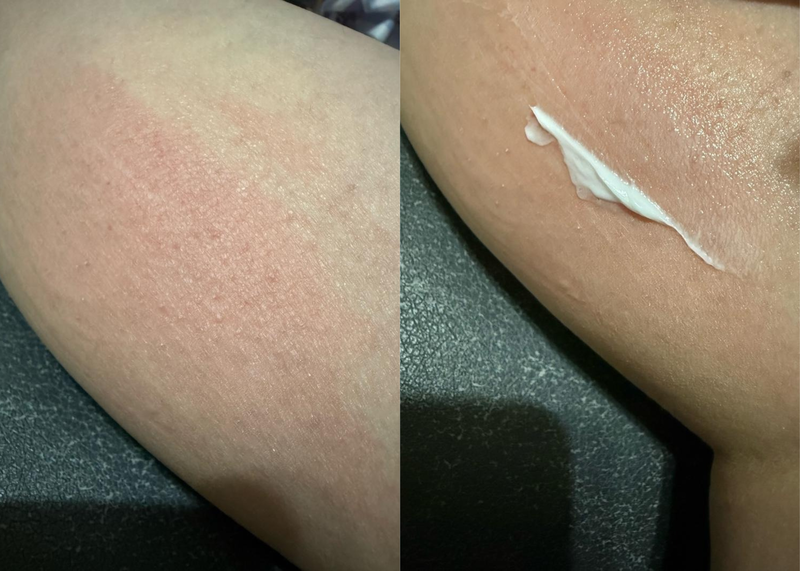 網友何何的身體皮膚本身非常容易乾燥泛紅,如果使用太多香料的潤膚露會痕癢,只搽乳液不夠保濕,她試用凡士林®特潤修護精華雪融霜後,大讚效果不錯:「 未搽時明顯有泛紅乾紋狀況,因為皮膚比較薄,亦容易敏感。after 的圖片可以看到乾紋減少,皮膚變得潤澤有彈力,水潤程度可以keep到翌日下午,我十分滿意呢。」