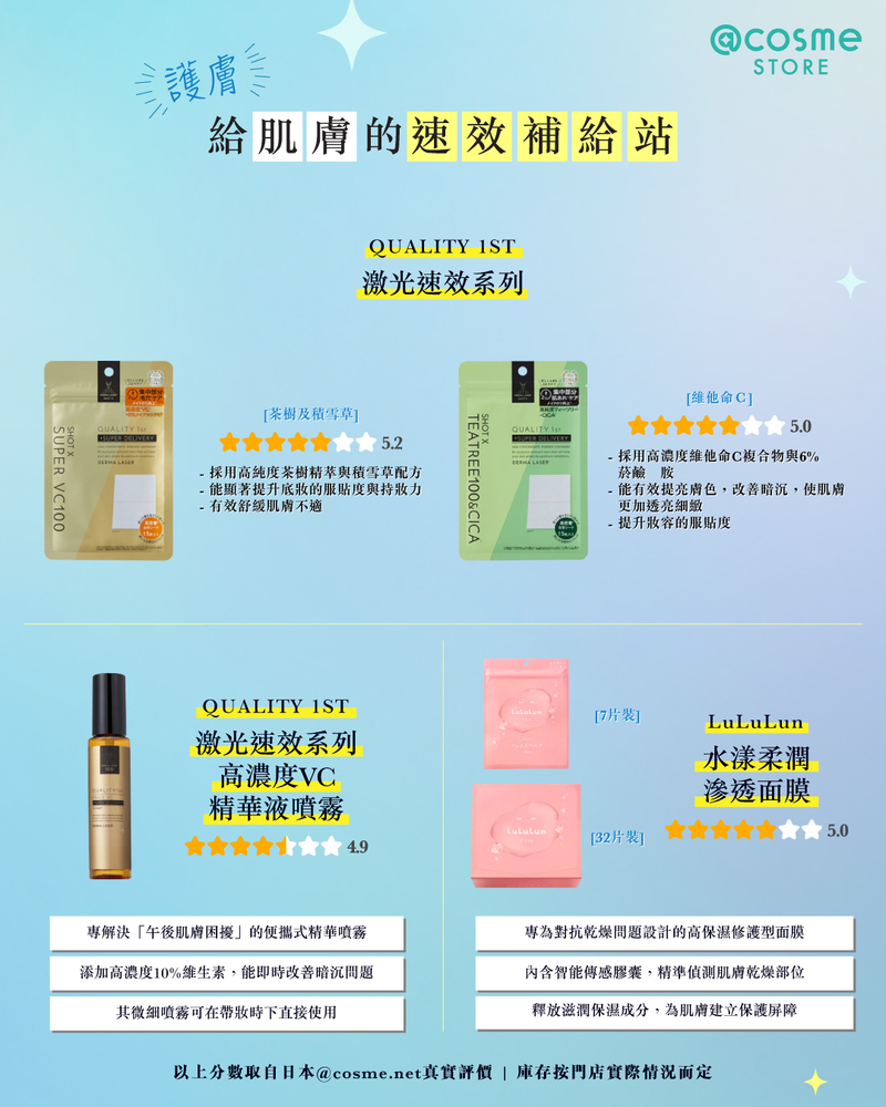 *取自@cosme日本評論網截至2026年1月7日的數據
