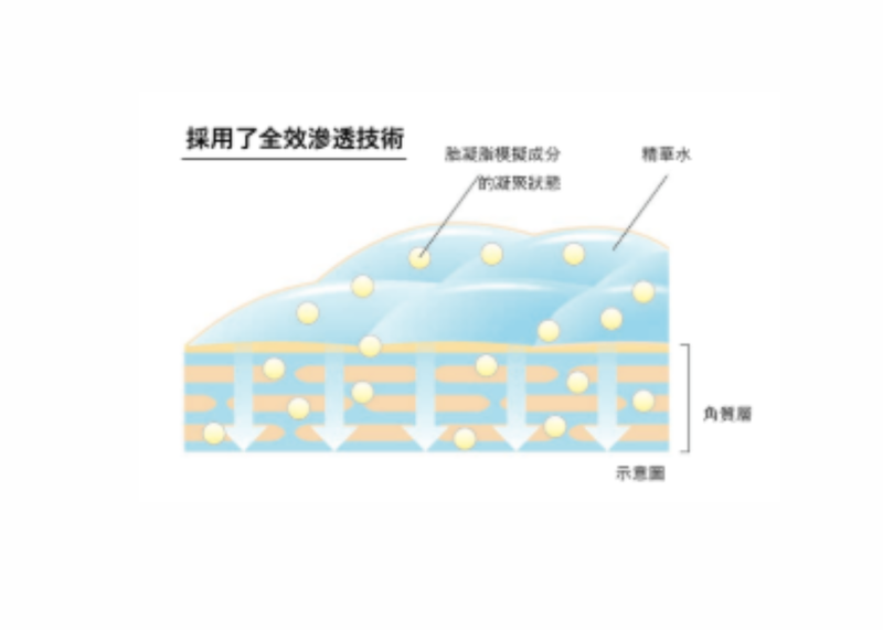 KANEBO採用了全效滲透技術,精華水能夠停留於皮丘,蘊含以微型化胎凝脂模擬成分TAISHITM Micro-Lipo 為主的油性成分得以維持均勻的細微化狀態,使化妝水能在肌膚凹凸部位均勻延展,順暢融入,將豐盈潤澤深入滲透肌膚紋理的每一處。