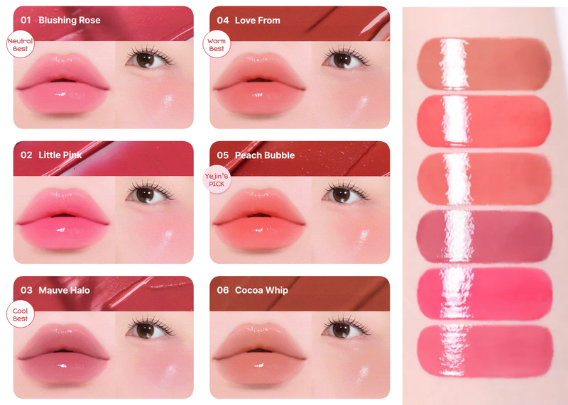 與韓國著名化妝師 Yejin 共同研發的多功能產品,以水光感和瑩潤妝效為主要特色,能一次過完成胭脂及唇部妝容;輕盈貼膚質感,不帶黏膩感,單層塗抹即可打造清透自然的唇色效果,疊加塗抹更顯亮澤。小巧瓶身,內置獨家矽膠刷頭,方便外出補妝使用;匙形刷頭更以指尖形態作為設計概念,讓用家能精準塗抹唇頰霜於顴骨、鼻樑、鼻尖、下巴及唇部等狹窄位置,打造 3D 立體豐盈效果。全系列提供 6 個色號選擇,滿足冷暖膚色及多樣妝容需求 ── 01 Blushing Rose 心動玫瑰、02 Little Pink 俏皮粉紅、03 Mauve Halo 柔光淡紫 、 04 Love From 甜蜜珊瑚 、05 Peach Bubble 蜜桃泡沫 及 06 Cocoa Whip 可可慕斯,帶來專屬柔美妝容,讓每一刻都散發如芭蕾般的優雅光采與甜美魅力!