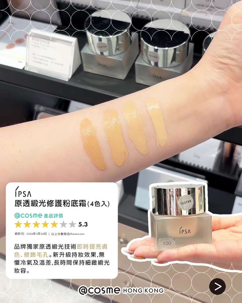 來到新的一年,當然要以最貼近肌膚的透明感底妝,點亮屬於您的自信光澤💫 IPSA 首次將專業肌膚分析「IPSALYZER」帶到 @cosme HONG KONG!IPSA 團隊會根據您的膚色、透亮度及肌膚狀態,打造專屬您的日系原生光感底妝🌸