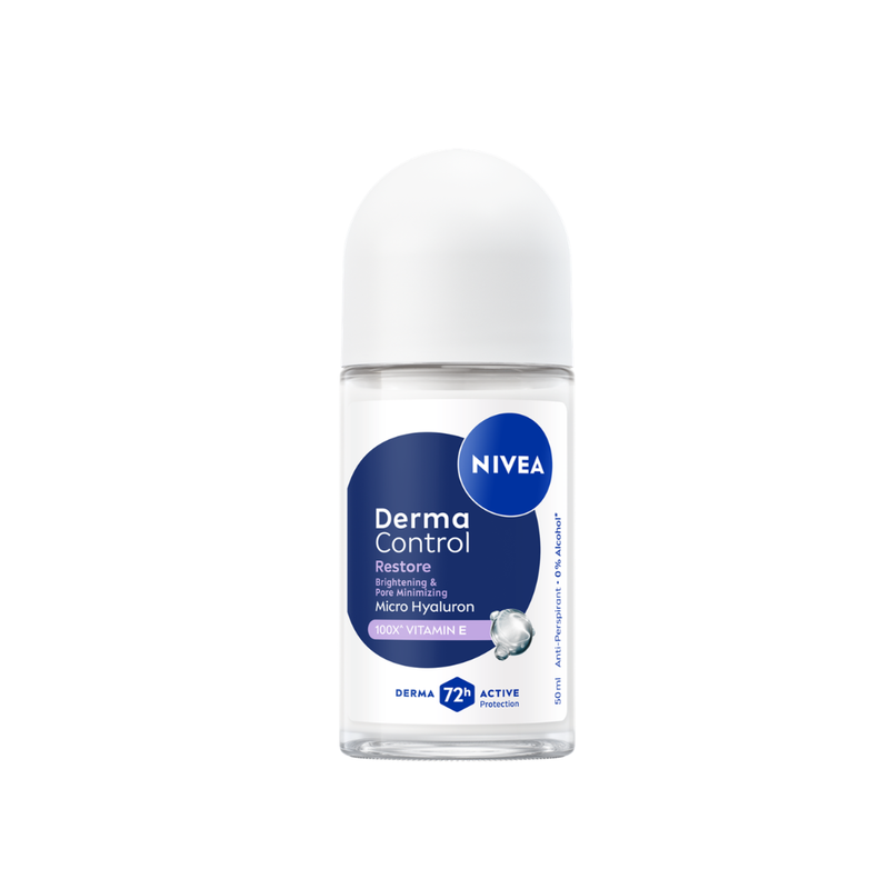 NIVEA Derma Control透明貿酸養膚嫩白止汗走珠專注打造均勻自然膚色,同時提供可靠72小時止汗保護。先進配方結合微分子透明質酸及100倍維他命C,有效改善「雞皮膚」粗糙外觀¹,同時淡化脫毛/剃毛後頑固黑色印痕。締造更光滑¹、更明亮自然的靚腋,帶來健康舒適的肌膚感覺。抗刺激,經皮膚科醫學測試證實適合敏感肌膚使用