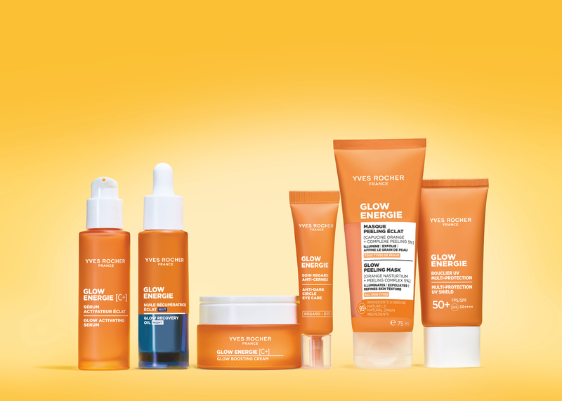 法國No.1護膚及個人護理品牌1及科研植物美肌先鋒Yves Rocher 全新推出金蓮花亮肌系列 (Glow Energie),專為 23 歲或以上肌膚研發,配方結合金蓮花及植萃抗氧化維他命C2,能瞬間擊退疲倦,喚醒肌底活力,在疲勞跡象變成衰老前及時糾正,維持亮澤健康狀態,助都市女性喚醒原生光感,在每一瞬間都能自信綻放,真正由內而外Wake Up Your Glow!