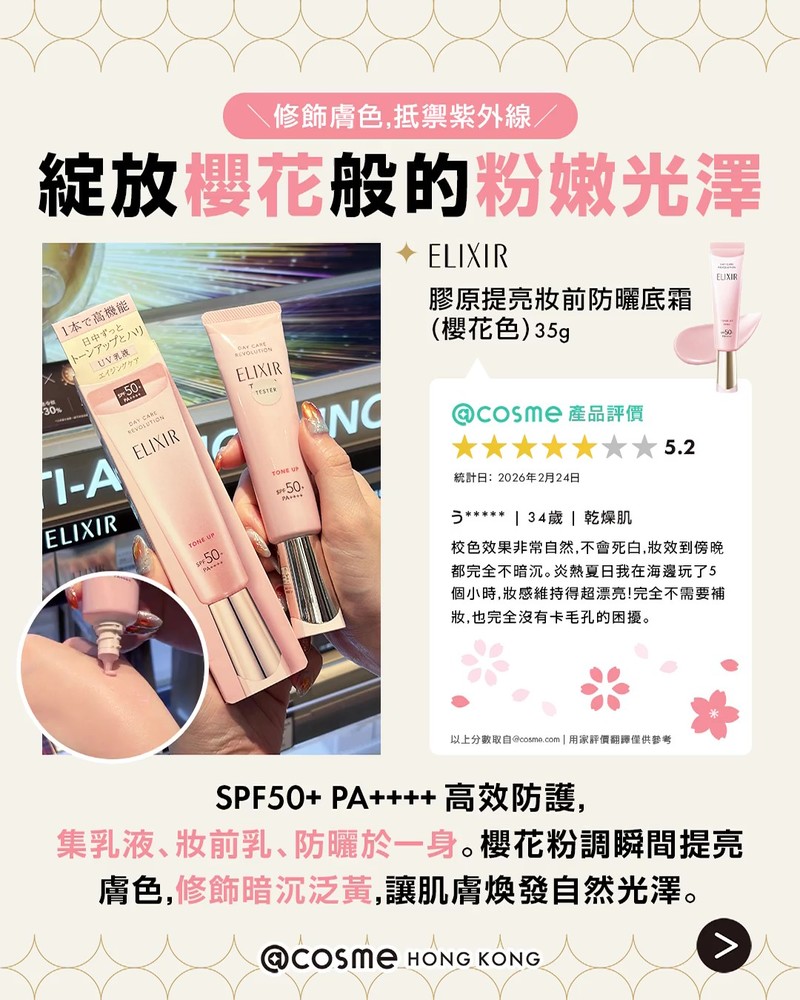 ✦ 𝐄𝐋𝐈𝐗𝐈𝐑 膠原提亮妝前防曬底霜 (櫻花色)