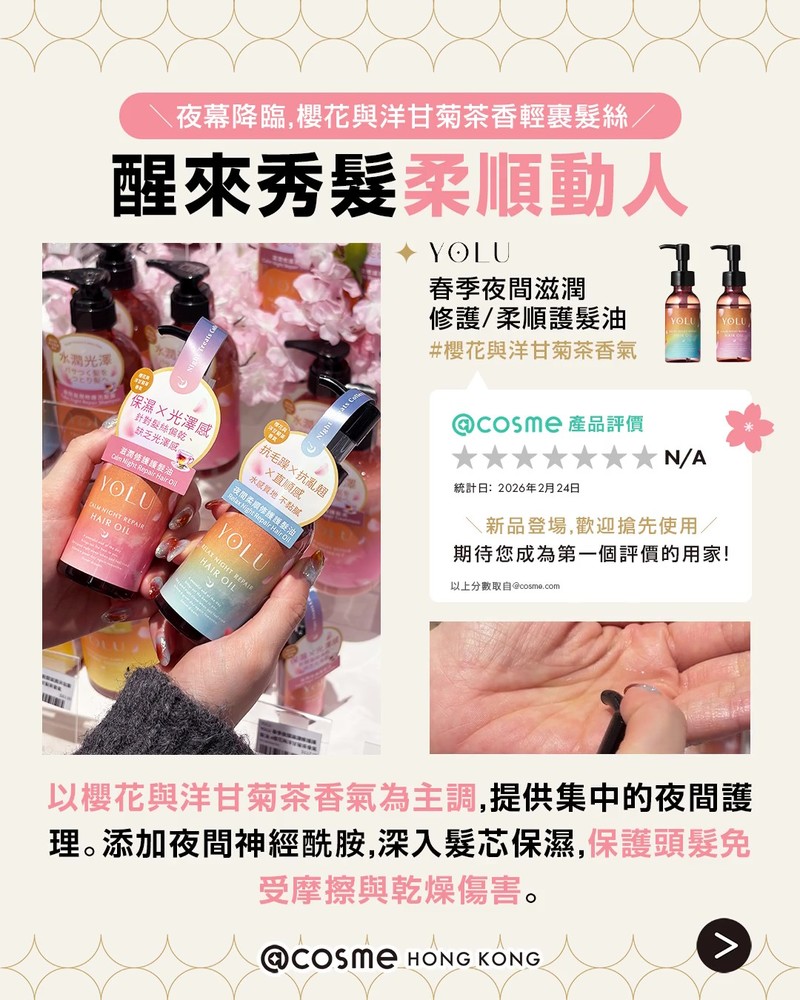 ✦ 𝐘𝐎𝐋𝐔 春季夜間修護護髮油 #櫻花與洋甘菊茶香氣 (滋潤款 / 柔順款)