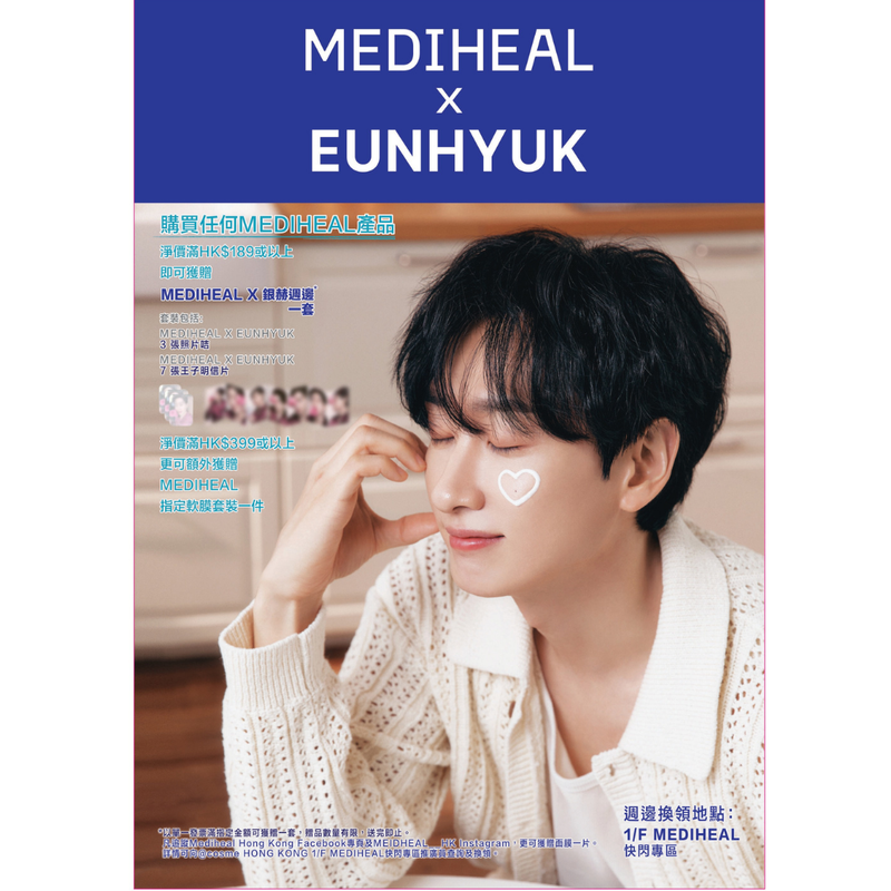 購買任何 Mediheal 產品淨價滿 HKD 189 或以上即可獲贈 銀赫週邊一套