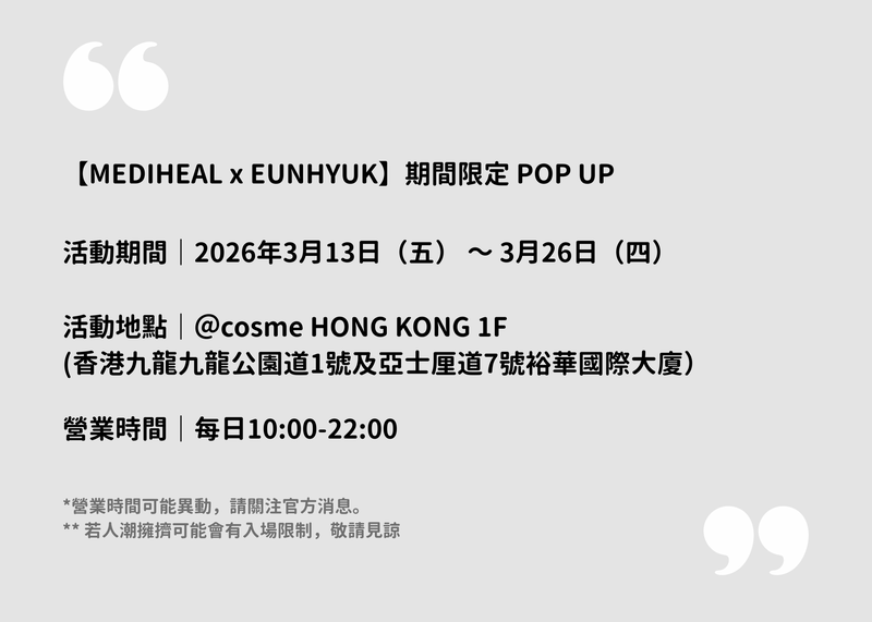 @cosme 旗艦店 x Mediheal x EUNHYUK POP UP - 銀赫同款 Mediheal 皇牌商品與新品一次體驗/MEDIHEAL