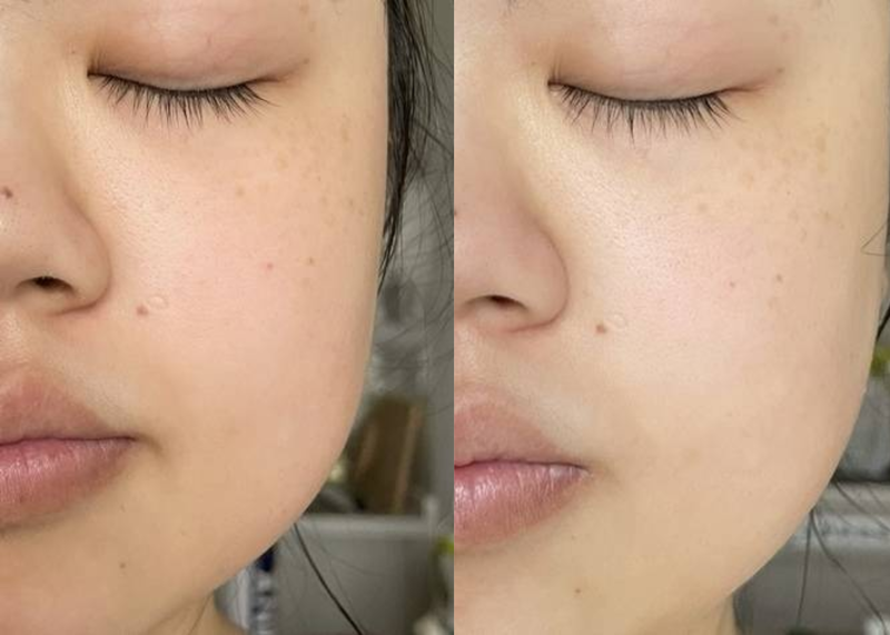 kyara918:用左2個星期之後感覺膚色有白左,zoom開會見到自己塊面最白好神奇🤣🤣🤣本身覺得嘴角、下顎比較暗黃,依家有提亮返,令到膚色望落都均勻返,同埋蘋果肌係會發光的💖另外有感皮膚穩定左。面中泛紅明顯有改善,呢段時間日日OT捱夜都無暗瘡大爆發,感恩🥹同埋面頰既毛孔亦都有細緻左,d窿窿無咁大同埋淺左🥹