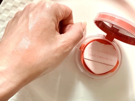 Fng:Jung Saem Mool 氣墊胭脂 ,我揀咗 韓國熱門色號#Carol Hola, 係珊瑚暖色調適合黃皮膚。質地水潤,我會底妝之前用它,如果唔係會印走底妝,上面係淡淡水光感嘅 效果,夠清透,多次疊加,適合偽素顏妝容。