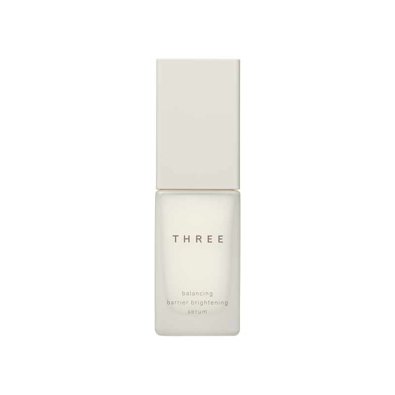 THREE BALANCING BARRIER BRIGHTENING SERUM 平衡循環煥白精華,是 THREE 香港首款美白精華。不同於一般只著重 “抑制” 黑色素的美白產品,這款煥白精華以精油科學 × 植物活性能量為核心,從肌膚代謝循環著手,促進更新、調理膚況,從根本預防斑點與雀斑,讓肌膚重現澄澈透亮。