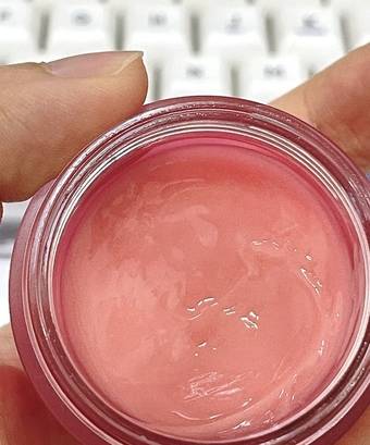果凍質地,塗上嘴涼涼的,草莓味超好聞(差點想舔一口🍓)!晚上厚敷一層,第二天起床嘴巴水嘟嘟的,乾紋都淡了好多!而且它自帶小挖勺,乾淨又方便~