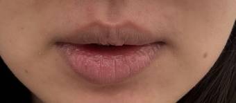 唇部明顯乾燥,唇紋較為明顯