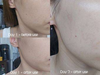 持續使用一星期後,肌膚感覺明顯更加緊緻和飽滿,彈性提升,jawline更明顯,但蘋果肌的豐盈感尚未明顯,或許需要更長時間才能看到更明顯的提拉效果。水潤度方面略嫌不足,加上保濕產品使用更佳。配合使用下,比起平時單用保濕產品,皮膚乾燥感更為減輕,特別是鼻部出油情況也有所緩解,上妝時底妝更加服貼。