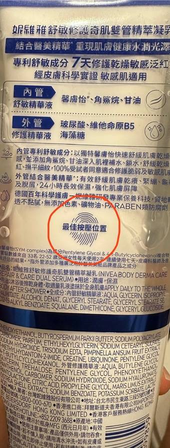 多謝@cosme 同NIVEA邀請,試用了 NIVEA DERMA CARE 舒敏修護雙管精萃凝乳🙂呢款產品一支包含左兩種質地:水潤既透明精華、潤滑既白色乳液。好有創意!!兩種質地都非常之容易推開,而且迅速被肌膚吸收,完全唔會有黏膩感,正!佢既包裝好細心,有教你按邊個位先係最佳按壓位置😙跟佢按個個位吱出黎,比例就最理想啦~