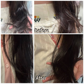 我的髮質偏向幼細脆弱,軟塌乾燥,持續使用後,頭髮毛躁狀態或乾燥狀態有減少,感覺梳頭髮更順暢,打結的情況減少,掉的頭髮也相對減少了點。頭髮的柔軟度、順滑度和亮澤度都有提升,不過蓬鬆度就一般。