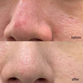最大感受的部分是鼻頭,由於鼻頭一開始有些痘印令鼻頭色素變深,使用水光小白瓶後明顯看得出鼻頭暗沉的部位變得亮白,不止減淡了痘印,粗大毛孔都得到改善,感覺有變平滑了一點。