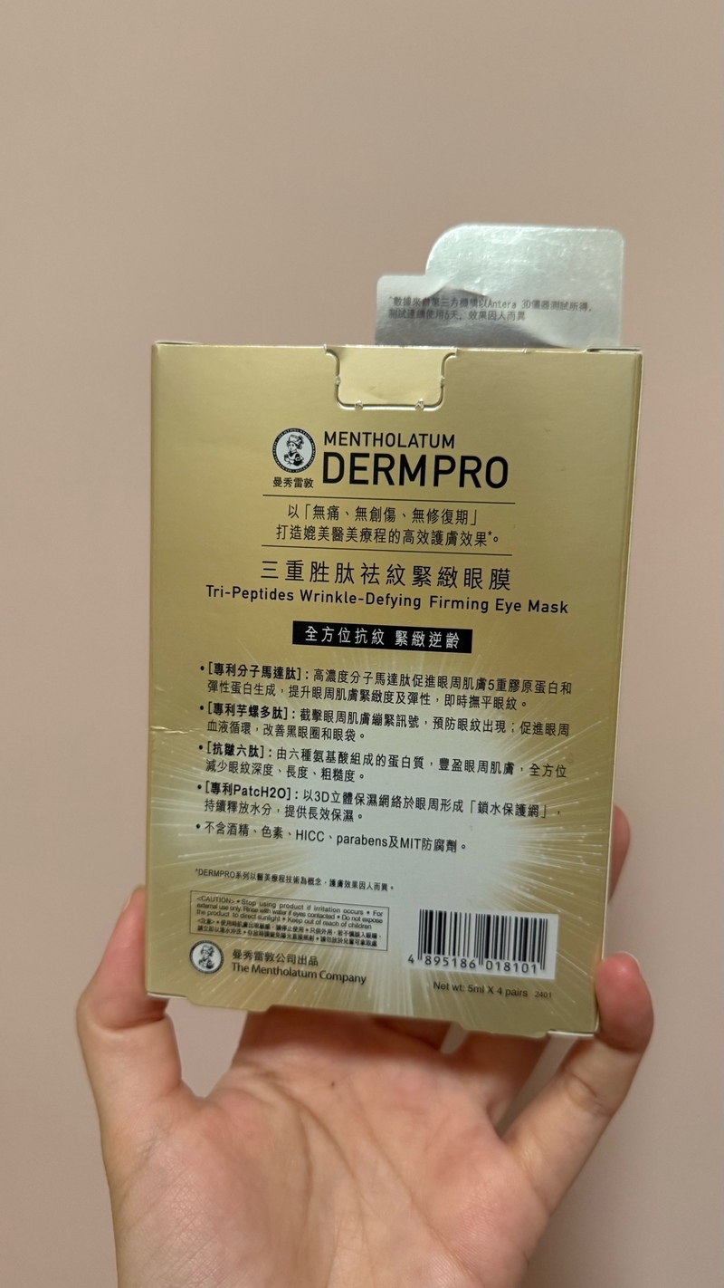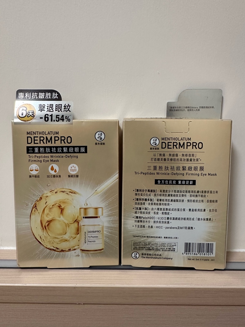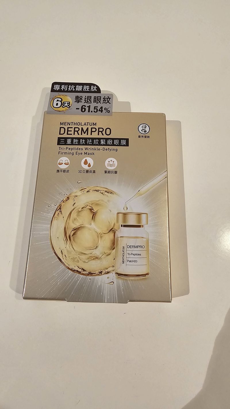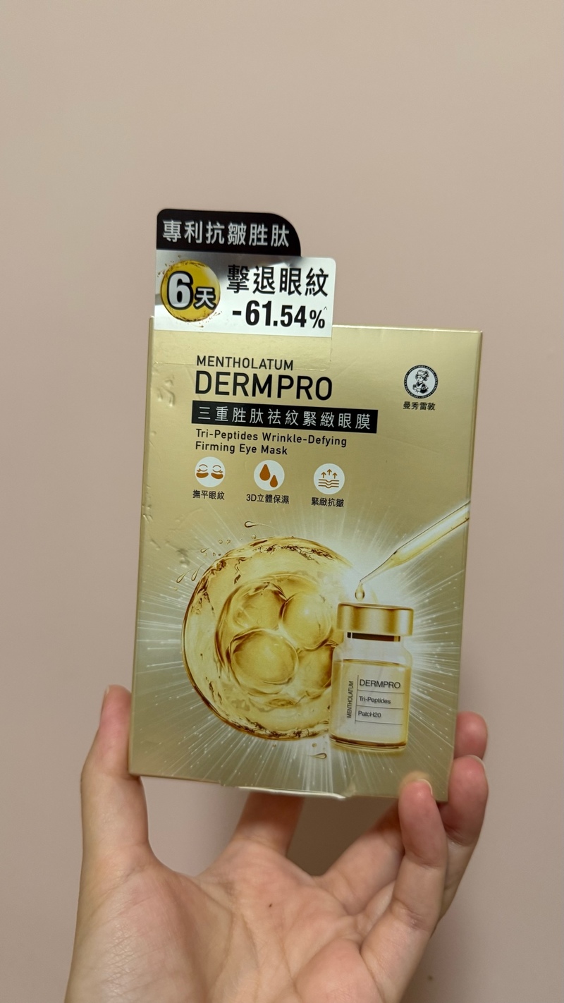 MENTHOLATUM 曼秀雷敦三重胜肽祛紋緊緻眼膜Tri-Peptides Wrinkle-Defying Firming Eye Mask眼膜5.0心得評價:29 篇(20人覺得好用)容量/價格:5.5g / HK$75上市日期:2025.08.01商品資訊 · 評價照片 · 影片照片·影片 93 件閱覽EchoSin心得 >>閱覽EchoSin心得 >>閱覽Sue心得 >>閱覽Sue心得 >>閱覽Sue心得 >>閱覽cherrycheung心得 >>閱覽cherrycheung心得 >>閱覽cherrycheung心得 >>閱覽cherrycheung心得 >>閱覽Amy心得 >>閱覽Amy心得 >>閱覽Amy心得 >>閱覽Yingc心得 >>閱覽Yingc心得 >>閱覽Yingc心得 >>閱覽Floflo心得 >>閱覽Floflo心得 >>閱覽Floflo心得 >>閱覽Wendy心得 >>閱覽Wendy心得 >>閱覽Wendy心得 >>閱覽Kelly心得 >>閱覽Kelly心得 >>閱覽ltlingzoei心得 >>閱覽ltlingzoei心得 >>閱覽EchoSin心得 >>閱覽EchoSin心得 >>閱覽mavvv心得 >>閱覽mavvv心得 >>閱覽mavvv心得 >>閱覽mavvv心得 >>閱覽karun心得 >>閱覽karun心得 >>閱覽karun心得 >>閱覽Bowie心得 >>閱覽Bowie心得 >>閱覽KK心得 >>閱覽KK心得 >>閱覽KK心得 >>閱覽Jojomo心得 >>1 2 3 欲看更多心得請下載@cosme App, 關注品牌,可即時收到品牌最新報導和豐富的好康活動通知喔~Apple StoreGoogle Play好評5星以上眼膜推薦MegRhythm蒸氣溫熱眼膜 無香味5.398篇心得La Colline活細胞眼部美化膜5.729篇心得HK$1990LANEIGE水活循環睡眠眼膜3.922篇心得HK$235CANVAS玫瑰緊緻睡眠眼膜4.012篇心得HK$795/575SHISEIDO 資生堂VITAL-PERFECTION Wrinklelift Mask3.87篇心得XOVĒ煥活緊緻眼膜3.46篇心得HK$430APIVITA銀杏修護眼膜3.55篇心得QUALITY FIRST高濃度VC眼膜 10shts4.05篇心得DHC水嫩細緻眼膜3.55篇心得LANEIGE水光亮白修護眼膜3.14篇心得HK$190Dr. Jou 森田藥粧超保濕彈力抗皺眼膜3.14篇心得TONYMOLY熊貓眼OUT魔法輕透眼膜2.74篇心得PreviousNext相關消息看全部香港獨家配方!@cosme排行榜NO.1 — 全新曼秀雷敦Lip Pure蜂蜜潤唇膏 100%天然力量 養出0唇紋柔滑唇72025.11.26# 精選話題曼秀雷敦全新 #無痛BOTOX眼膜 以BOTOX技術6天極速擊退眼紋-61.54%*!22025.09.05# 精選話題細節做到滿分、精緻感也提升!令人無法忽視的雙唇更應該好好保養!一起加入 LIP PURE 全新升級行列!72024.10.08# 精選話題其他 MENTHOLATUM 曼秀雷敦 推薦產品看全部MENTHOLATUM 曼秀雷敦LIP PURE 蜂蜜潤唇膏潤唇膏5.7心得評價:37 篇容量/價格:4g / HK$41.3MENTHOLATUM 曼秀雷敦溫感高保濕潤唇膏-無香料潤唇膏5.3心得評價:60 篇容量/價格:2.4g / HK$56MENTHOLATUM 曼秀雷敦蘆薈補水面膜片狀面膜5.1心得評價:30 篇MENTHOLATUM 曼秀雷敦Acnes抗菌痘痘貼其它彩妝・保養工具5.1心得評價:70 篇特別企劃與試用活動看全部人氣澳洲品牌 Grown Alchemist 隱形毛孔神器 -肌底防禦啞緻隔離霜,打造零瑕疵底妝!【免費試用活動】立即體驗 CeraVe 抗老修護系列3件組ADDICTION 2026 春季最新彩妝系列,夢幻水光唇妝,打造日系精緻妝容!【免費試用活動】立即報名 - 率先體驗 Curel 全新 碳酸泡沫潔面乳及精華