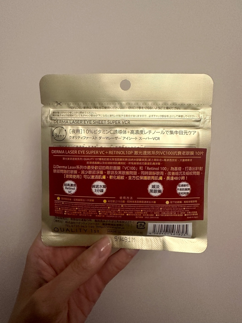 QUALITY FIRST高濃度VC眼膜 眼膜4.3眼部護理 排行榜 No.8心得評價:6 篇(5人覺得好用)容量/價格:上市日期:商品資訊 · 評價照片 · 影片照片·影片 13 件閱覽Kelvin心得 >>閱覽Kelvin心得 >>閱覽Poyobb心得 >>閱覽Poyobb心得 >>閱覽Poyobb心得 >>閱覽橘子貓心得 >>閱覽Fng心得 >>閱覽Blooming心得 >>閱覽Blooming心得 >>閱覽mandy心得 >>閱覽mandy心得 >>閱覽mandy心得 >>閱覽mandy心得 >> 欲看更多心得請下載@cosme App, 關注品牌,可即時收到品牌最新報導和豐富的好康活動通知喔~Apple StoreGoogle Play好評5星以上眼膜推薦MegRhythm蒸氣溫熱眼膜 無香味5.398篇心得La Colline活細胞眼部美化膜5.729篇心得HK$1990MENTHOLATUM 曼秀雷敦三重胜肽祛紋緊緻眼膜5.029篇心得HK$75LANEIGE水活循環睡眠眼膜3.922篇心得HK$235CANVAS玫瑰緊緻睡眠眼膜4.012篇心得HK$795/575SHISEIDO 資生堂VITAL-PERFECTION Wrinklelift Mask3.87篇心得XOVĒ煥活緊緻眼膜3.56篇心得HK$430DHC水嫩細緻眼膜3.55篇心得APIVITA銀杏修護眼膜3.55篇心得Dr. Jou 森田藥粧超保濕彈力抗皺眼膜3.14篇心得LANEIGE水光亮白修護眼膜3.14篇心得HK$190TONYMOLY熊貓眼OUT魔法輕透眼膜2.74篇心得PreviousNext其他 QUALITY FIRST 推薦產品看全部QUALITY FIRST激光超效維他命面膜片狀面膜5.8心得評價:55 篇容量/價格:7片 / HK$72特別企劃與試用活動看全部讓肌膚自體生水、水光爆發的秘訣?BIODERMA 1+1科研保濕 皮膚科醫生首選推薦!SHESHIDO ULTIMUNE皇牌免疫力活膚精華,3天肌膚水光飽滿+50%,煥發Plumpy Glowy Skin!日本醫學級品牌Spa treatment B5冰萃水光瓶,突破納米科技界限 !【免費試用活動】M.A.C 專業無瑕霧鏡氣墊粉底,一抹開啓磨皮美肌!