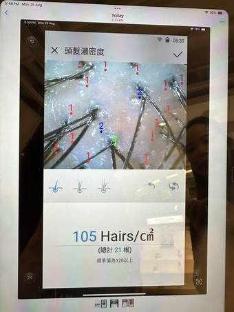 使用 一個月後, 再次返到L'Occitane 做多一次頭皮分析,見到自己髮根位置原先有一條, 開始生番2-3條頭髮。