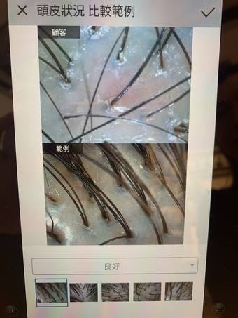 可見Thickness 濃密度有改善,有短短幼幼既新毛髮生左出黎,職員建議我要繼續給營養比頭皮/毛囊,新生既毛髮就會強韌健康。