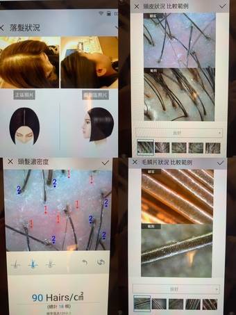 解釋每個健康既毛囊會有三條頭髮,我既毛囊多數有兩條或一條頭髮,有部分毛囊有兩條頭髮但其中一條頭髮就好幼,職員建議我要定期做頭皮深層清潔,生出來既頭髮先健康,幼細既頭髮會容易脫落,生命周期較短,要用精華令頭髮更強韌,防止脫落。