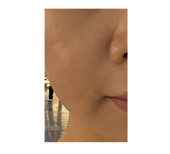1. 妝感自然, 薄塗一層能即時均勻膚色,自帶透亮高光感,蘋果肌位置無需要打亮都明顯pump up