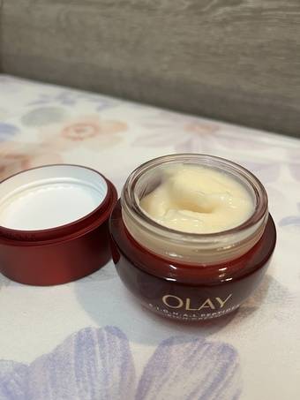 配合用OLAY胜肽專研緊緻修護安瓶精華,用咗2個星期 ,嘴角法令紋有輕微減淡,面頰位置feel到有彈力脹卜卜,氣色有好咗,冇咁暗沉,保濕力滋潤度👍皮膚摸落都細滑咗🥰啱哂而家嘅天氣日日用。