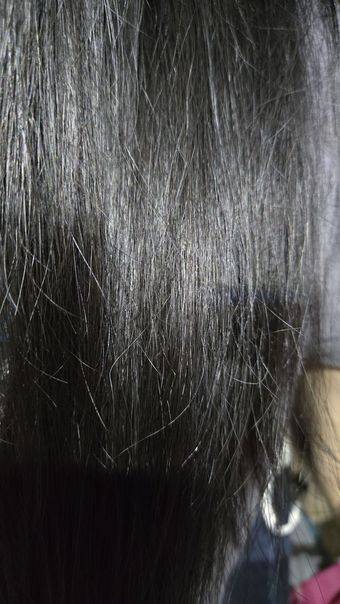 ☝🏻下半段頭髮有用髮油並用直髮夾夾直,上半段頭髮無用髮油,明顯見到無用髮油的上半段頭髮乾燥及毛躁情況嚴重