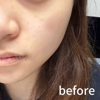 使用用隔離底霜前,可見皮膚有暗沉、色素沉澱、斑點等問題。