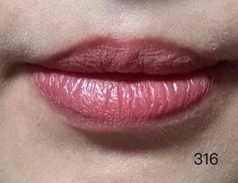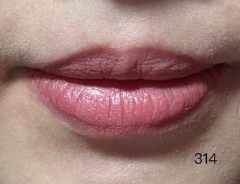 先介紹314這個我最滿意的色號,很順滑好推開,會融入皮膚,所以沒卡唇紋。雖然是霧面,但又不是啞色,仍看到有光澤,令唇紋變自然了。而且足夠覆蓋我原先深的唇色,顏色是很自然,日常就可以用到,氣色變好。